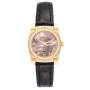 Bracelet: Black leather strap with 18k yellow gold deployant clasp.