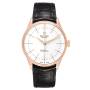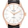 Dial: White lacquered dial with 18k rose gold baton hour markers and dauphine hands. Fine printed minute/seconds track. Centre hour, minute, and seconds 18k rose gold hands.