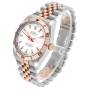 Dial: White dial with raised rose gold baton hour markers. Date window at 3 o'clock aperture. Red seconds hand and date wheel.