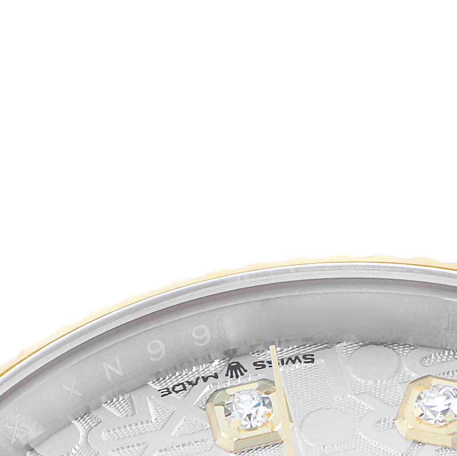 Dial: Silver jubilee anniversary dial with replica Rolex factory diamond hour markers and yellow gold baton hands. Date calendar at the 3 o'clock aperture.