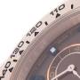Dial: Racing chocolate brown dial with raised luminescent black Arabic numeral hour markers and luminescent rose gold baton hands. Three engine-turned subdials -- running small seconds at 6 o'clock, 30-minutes at 3 o'clock, and 12-hour at 9 o'clock chronograph registers. Outer minute and 1/5-second stick markers.