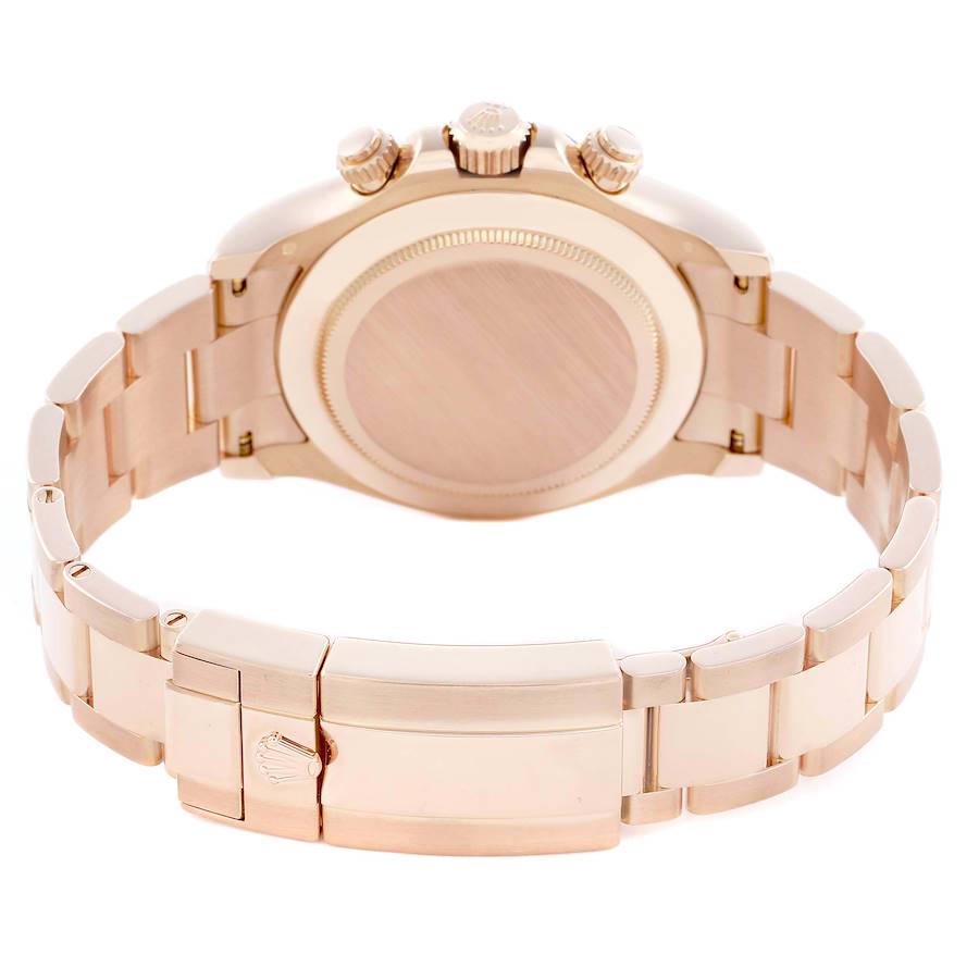 Case: 18K rose gold case 40.0 mm in diameter. Special screw-down push buttons. Screw-down case back. Chronograph pushers and crown with pointed guards. Rolex logo on the crown.